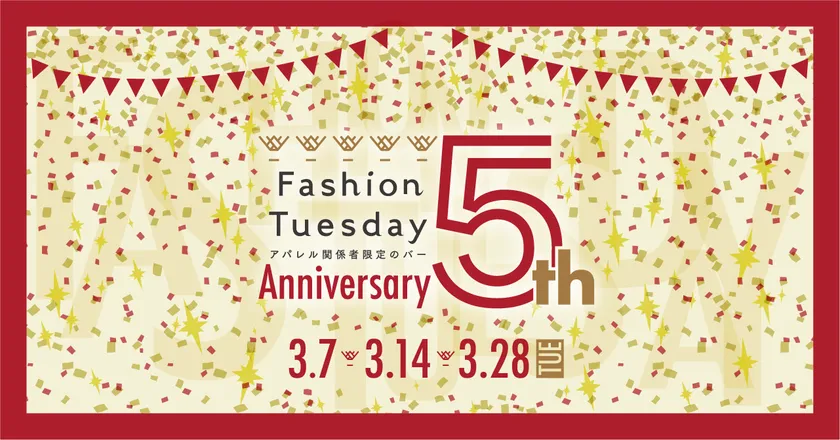 2023年3月7日(火)、14日(火)、28日(火)の3週にわたり、Fashion Tuesday 5th Anniversary Partyを開催させていただきます。