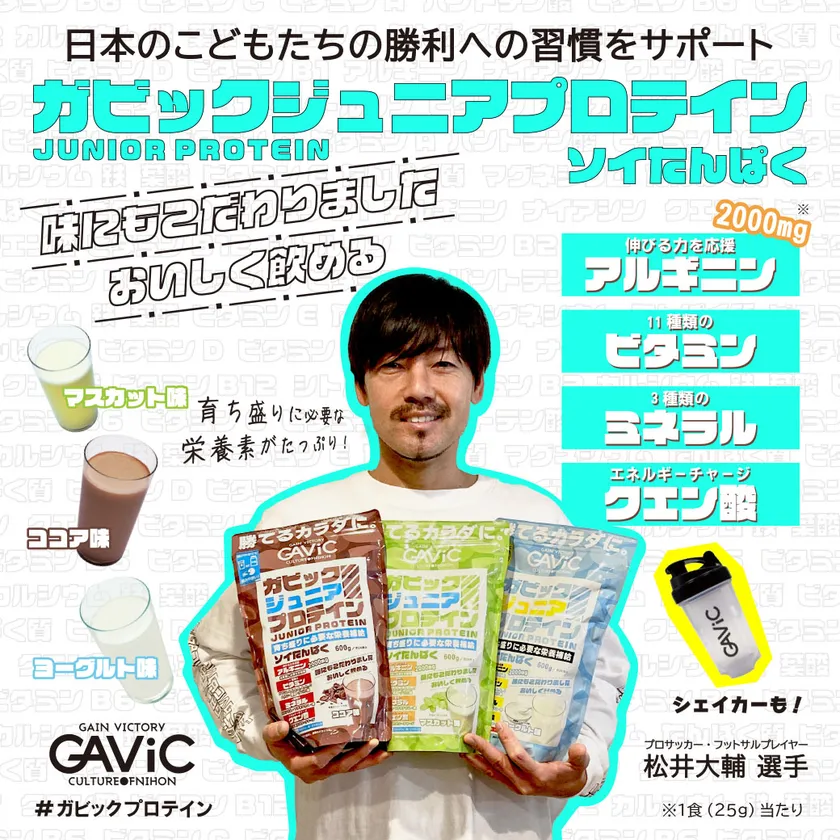 ガビック公式YouTubeチャンネルにて小学生のお子様がいらっしゃるプロサッカー・フットサルプレイヤーの松井大輔選手を起用したプロテインに関する動画を公開しています。