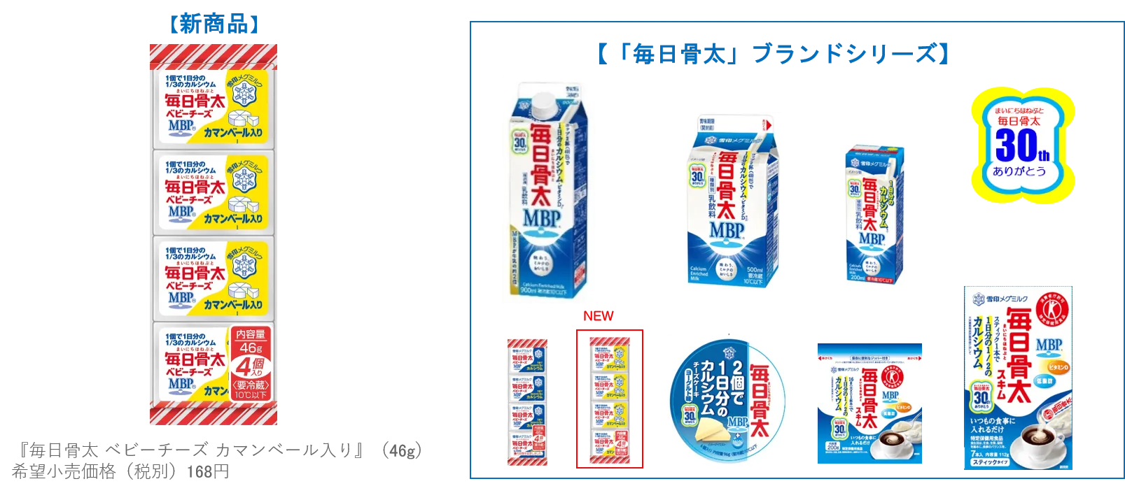 1個で1日分の1/3のカルシウムとMBP(R)を摂取! 毎日続けやすい、やさしいカマンベール風味 『毎日骨太 ベビーチーズ カマンベール入り』新発売!