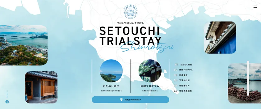 古民家を活用したお試し住宅をオープンするとともに、利用者に、「まち歩き」や「先輩移住者との交流会」などのプログラムを体験していただくことで、リアルな下津井の魅力を感じていただき、下津井を応援する人・関係する人・移住する人を増やしていきたいと考えています。