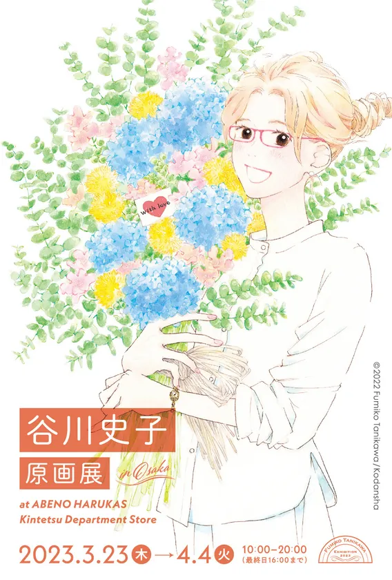 1986年のデビュー以来、30年以上にわたり少女誌や女性誌を中心に漫画を発表し続け、その繊細かつ温かみのある絵と、切ないラブストーリーが幅広い年代から支持を得ている谷川史子。『おひとり様物語』完結を記念して東京で開催した『谷川史子原画展』が大阪へ巡回いたします。『おひとり様物語』の漫画原稿と1巻~10巻の表紙原画、ネームや他誌掲載作品の原画などを展示いたします。 予告カットなどに使用された原画、原画展公式パンフレット、複製画、ポストカードなどのオリジナルグッズも販売します。