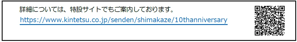 しまかぜ10周年キャンペーンの詳細は別紙のとおりです。