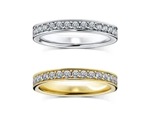 ブライダルジュエリーの企画・販売を行うプリモグローバルホールディングス株式会社(本社:東京都中央区、代表取締役社長:澤野直樹)が運営するダイヤモンド専門店「ラザール ダイヤモンド ブティック」では、精巧な造形美と上質な着け心地のエタニティリングのデザインを豊富なバリエーションでご用意しています。メレダイヤモンドが贅沢に連なるデザインは「永遠(=エタニティ)」を連想させることから、結婚記念日などのプレゼントにもぴったり。婚約指輪や結婚指輪との重ね着けはもちろんのこと、華やかに指元を彩る日常使いしやすいデザインです。