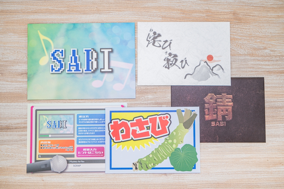 この謎は、それぞれ“SABI”にまつわる3つのテーマの謎を解くことから始まります。和の趣を感じられる「侘び寂び」、一部の情報から全体を推測して謎を解く「錆」、オーソドックスな謎解きが盛りだくさんの「わさび」。これら3つの謎を解くことで、大サビ、ラスサビへと謎が続いていきます。種類豊富でボリュームたっぷりの謎解きと、それらが合わさって生まれるラストスパートの盛り上がりをお楽しみください。