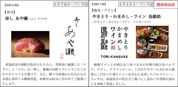グランフロント大阪ショップ&レストラン 開業10周年のリニューアル! この春以降に23店舗が順次オープンします! ~大型店3店舗の他、ファッションや飲食など 20店舗がオープン~