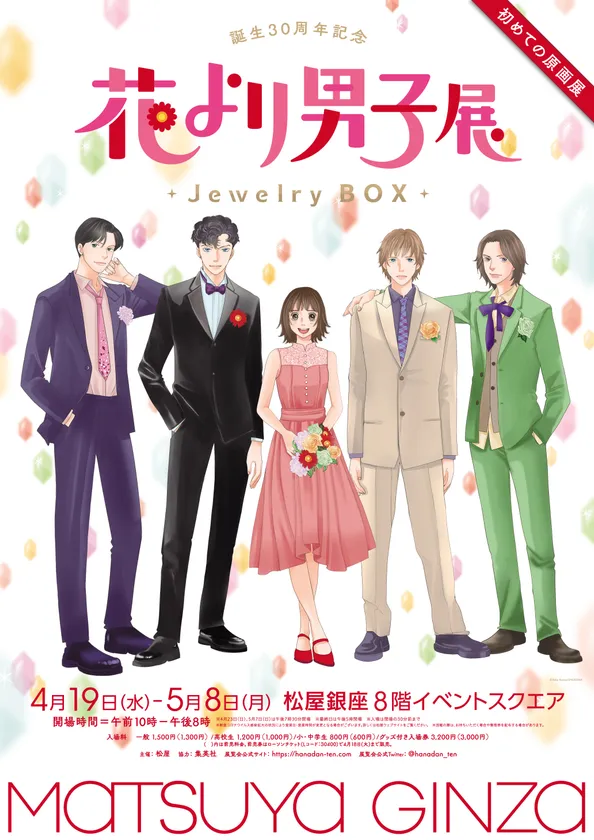 松屋銀座では、2023年4月19日(水)から5月8日(月)の日程で「誕生30周年記念 花より男子展 -Jewelry BOX-」を開催いたします。この度、2023年3月1日(水)10:00よりチケットの販売を開始いたします。