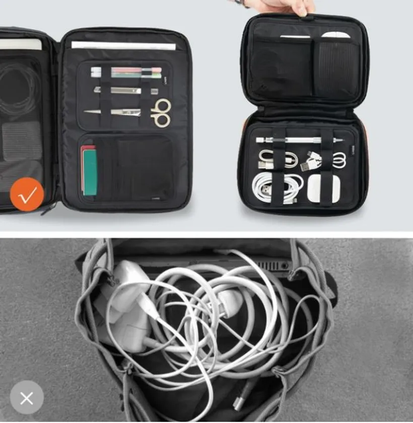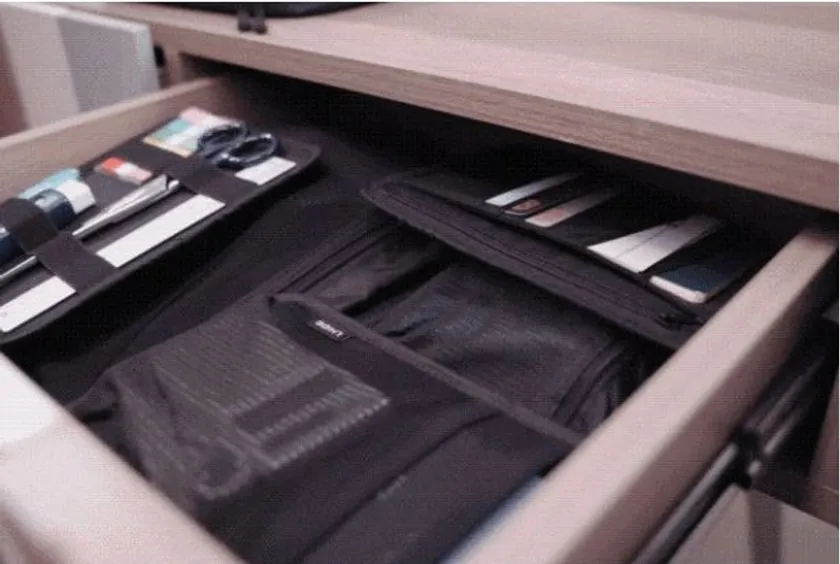 目的別に必要なものを収納ボードにセットしておけば、そのままバッグに入れるだけで準備が完了するので、外出・出張の度に必要なものを探して、バッグの中に入れる作業は必要ありません。