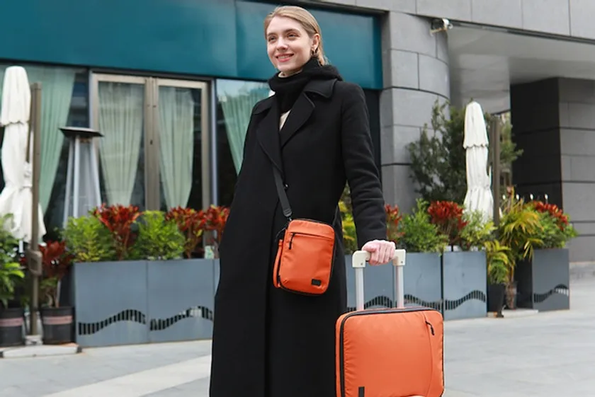 そのうちの1つには背面に通し穴があり、スーツケースに取り付けてキャリーオンバッグにすることも可能です。