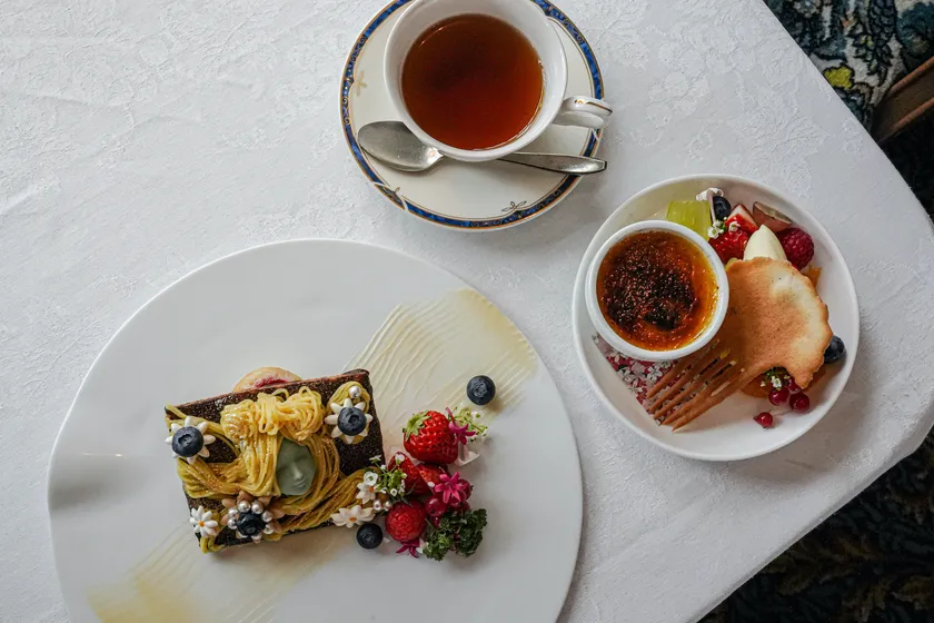 ~「Orient Express(オリエント急行)」ティーサロンで 常設企画展示「美しき時代(ベル・エポック)と異彩のジュエリー」と コラボレーションした“食べるアートスイーツ”~