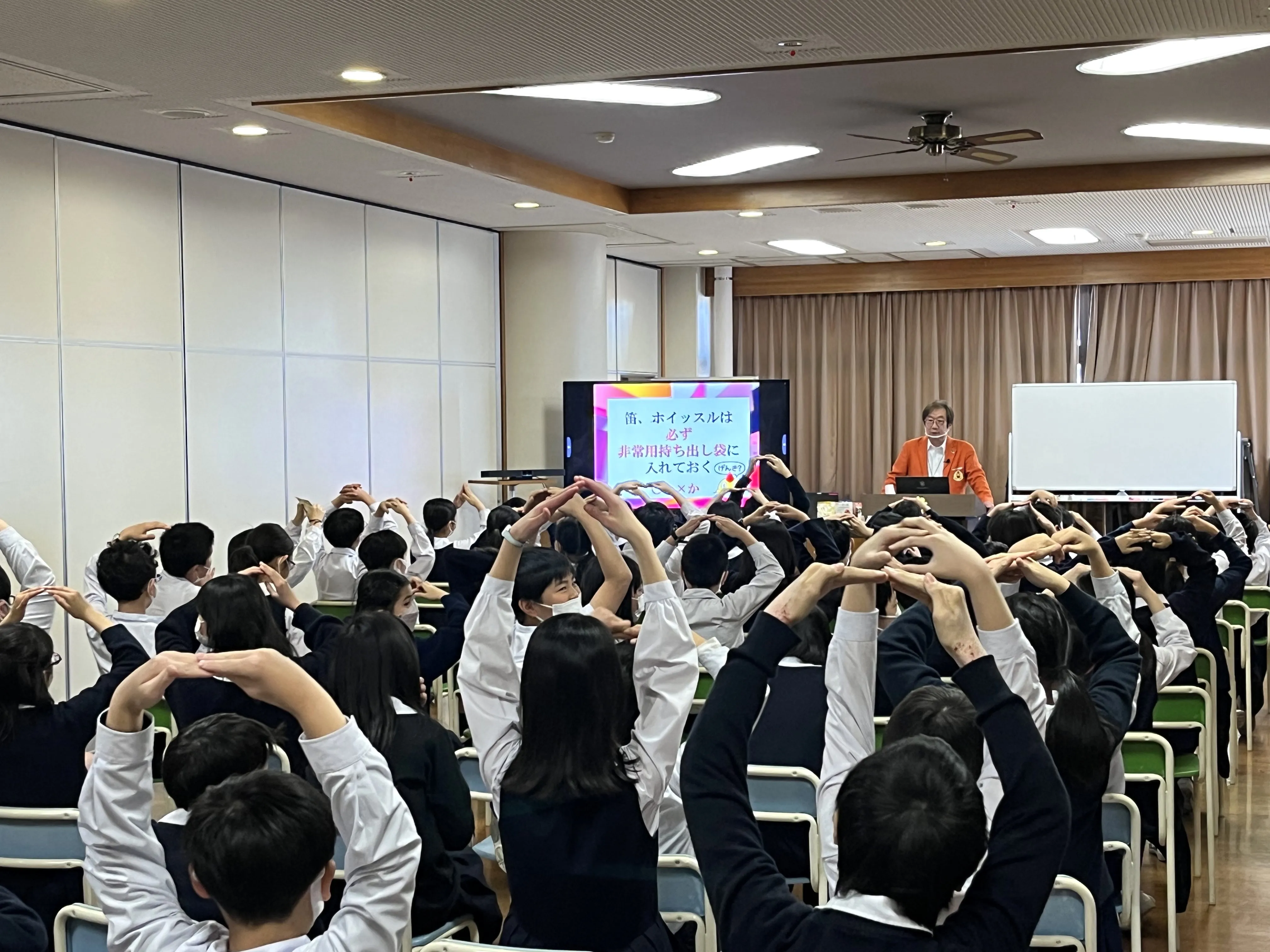 普段から、状況に応じて自分で判断する、考えるということがとても重要だということを考えさせられます。今回の木原氏によるクイズ形式のセミナーは、子ども達も「自分ごと」として考えてもらう大変良い機会となりました。