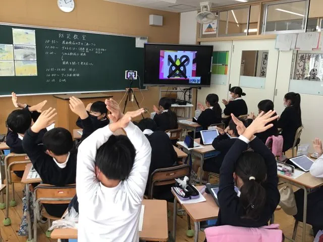 今回の参加校、なみえ創成小学校(福島県双葉郡浪江町 校長 横山浩志 先生)は、現在、震災遺構となっている旧請戸小学校の新設校です。当時の請戸小学校は東日本大震災で甚大な津波被害に見舞われましたが、全員無事に避難することができた奇跡の学校として知られています。これまで尾西食品が防災教室で伝えてきた「備え」の大切さとともに、「命を守る」ことの大切さを学び、継承されてきた浪江町の先生方と子ども達に学ぶべきものがあると考え、全国の学校様のご協力のもと、3月11日を前にした2月28日に合同の防災教室が実現しました。