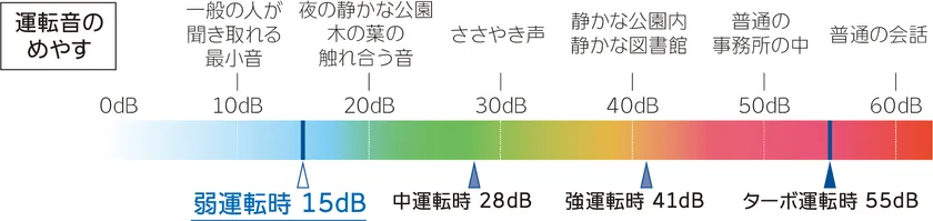 最小運転音は15dB。