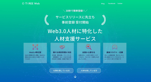 Web3.0特化求人サービス「Three Web」の事前登録開始(事前登録特典あり)