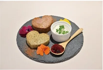 卵・乳製品・動物性原料不使用の2種類のスコーンのスイーツプレート。Girl with Balloon (風船と少女)をイメージ。