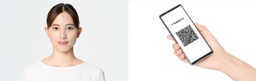 利用者は、自身のスマホで顔写真を撮影し、自分専用の鍵となる「顔 QR」を作成。施設に設置した「Kaonin」に「顔 QR」をかざし、カメラに映る顔データと「顔 QR」のデータが一致すれば解錠する仕組みです。