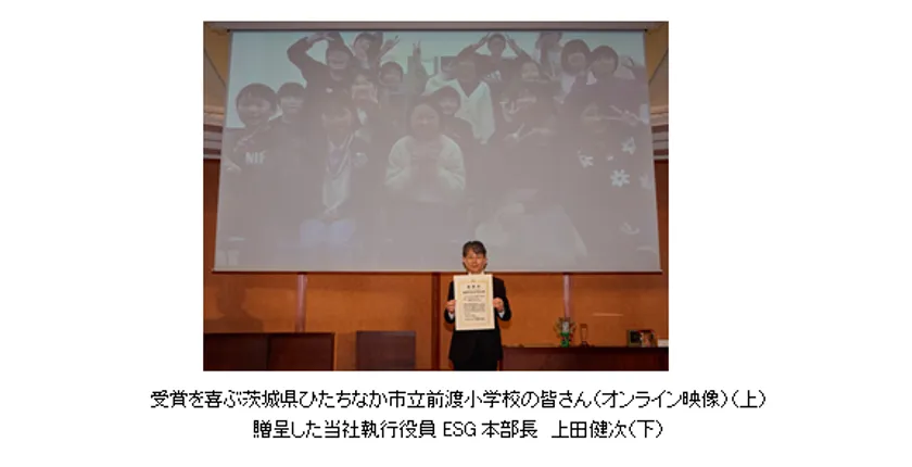茨城県ひたちなか市立前渡小学校の皆さんの取り組みは、当社のパーパスである「SDGsの達成に貢献する」ことと親和性が高く、「最優秀やさしさでささえる賞」にふさわしいと判断しました。