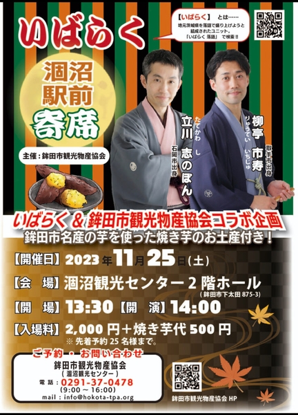 茨城県出身の落語家、立川志のぽんと柳亭市寿のユニット「いばらく」と鉾田市観光物産協会のコラボが実現!