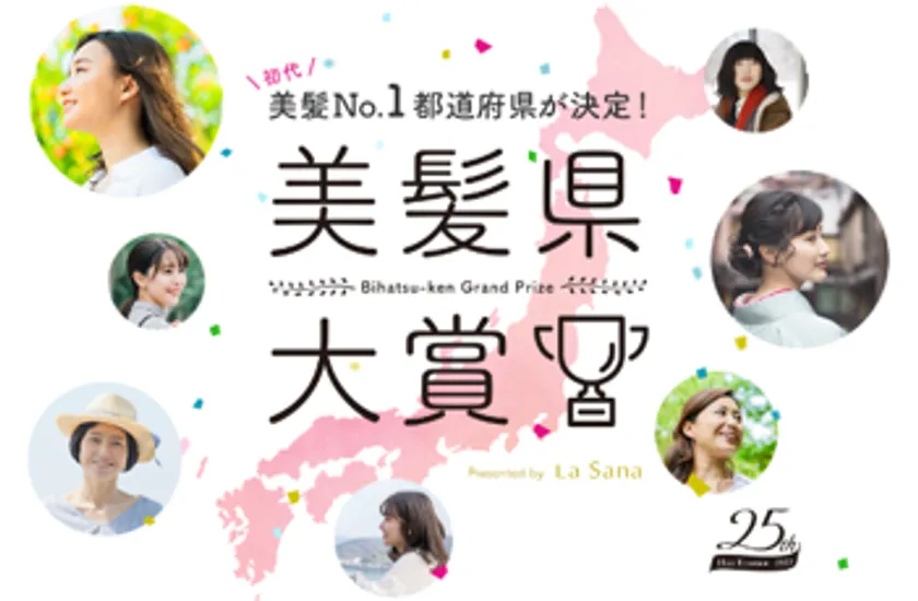 La Sana(ラサーナ)看板商品の「海藻 ヘア エッセンス (洗い流さないトリートメント)」は2023年3月に発売25周年を迎えました。「海藻 ヘア エッセンス 」を愛してくださったすべての方々に感謝の気持ちをお伝えするとともに、全国各地の皆さまの美髪づくりのサポートをしたいという思いから、全国で美髪No.1の都道府県を決定する「美髪県大賞」を開催いたしました。