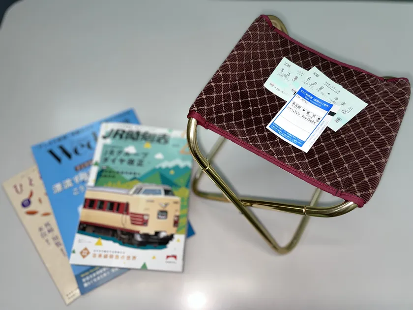 <商品名> N700S グリーン車座席モケット折り畳みイス 収納袋セット
