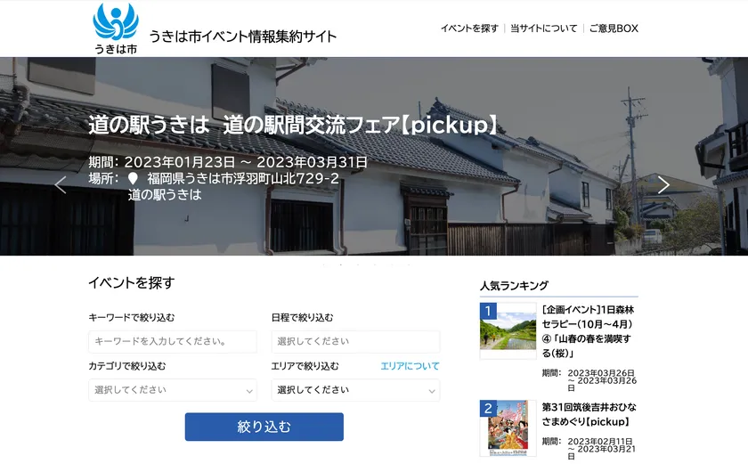 その一環として、市民と観光客への効率的なイベント情報発信を目的に、当社のサービスである「うきは市イベント情報集約サイト」を採用いただきました。