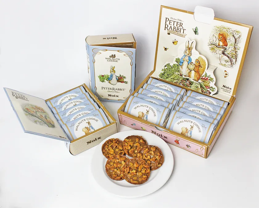 Noixでは他にも、大粒のクルミとキャラメルクリームをサクサクのパイ生地でサンドした「木の実のミルフィーユ」や、ピーターラビットとコラボしたウォールナットクッキー限定パッケージなども販売しております。