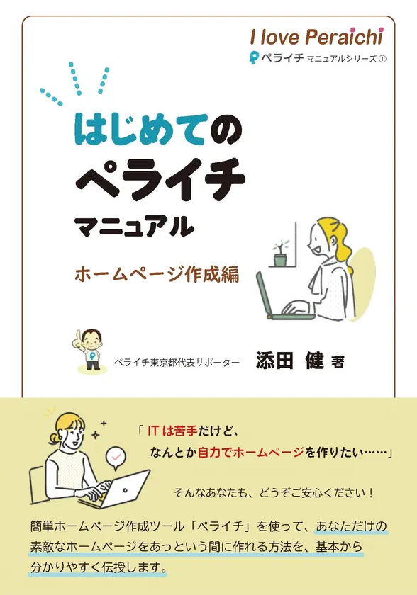 そこで今回、業界初となるマニュアル『はじめてのペライチマニュアル~ホームページ作成編~』(出版者:株式会社STUDIO RICE)を添田 健の活動の一環として発売することになりました(※2)。