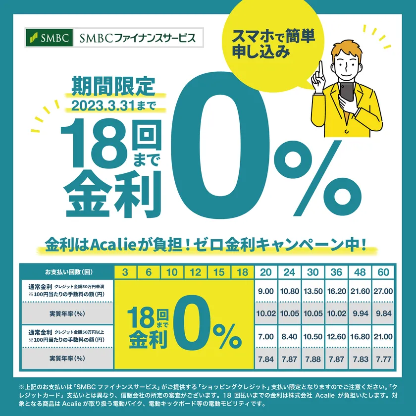次世代型商品を展開する株式会社Acalie(本社:愛知県名古屋市、代表取締役兼CEO:中友 孟涛、以下 Acalie)は、春からの新生活応援の意味を込めSMBCショッピングローン“ゼロ金利キャンペーン”を2023年3月1日より開催スタートします。同時に改正道路交通法に対応した免許不要モデル「COSWHEEL MIRAI T model-ONE」の電動キックボードを開発スタートします。