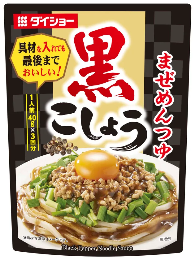 『黒こしょうまぜめんつゆ』は、「インパクトのある辛さ」と「また食べたくなる味」を組み合わせ、“クセになる味”をテーマに製品開発しました。しょうゆベースに、ビーフのうまみとねりごま・タマネギでコクを加え、黒こしょうの辛さの中に青花椒でアクセントを付けることで刺激的な辛味に仕上げた個食用まぜめんつゆです。うどんやそうめんなど麺に絡め、炒めた豚ひき肉、ニラ、卵黄などの具材をトッピングすれば、暑い夏の食欲を刺激する一皿が手早く作れます。また、ご飯、卵、ニラ、チャーシューを用いた「黒こしょうチャーハン」などのアレンジメニューも楽しめます。