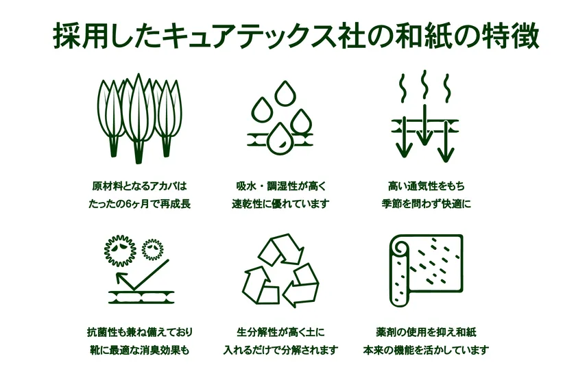 和紙糸自体に消臭性があり、菌が繁殖しやすい足元にこそ最適。