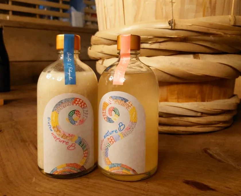 Ginten NatureB新商品 左:Ginten NatureB ぷくぷく醸造 自然米ホップどぶろく 右:Ginten NatureB LIBROM 自然米&あまおう