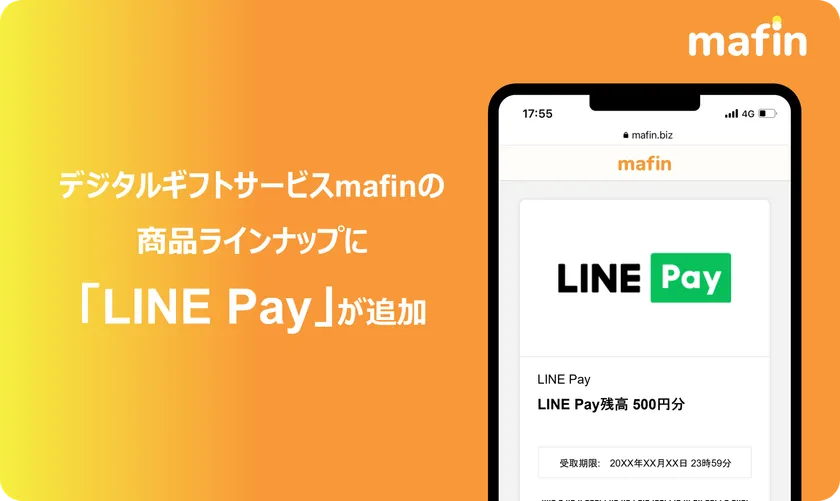 デジタルギフトサービス「mafin(マフィン)」を手掛ける株式会社マフィン(本社:東京都渋谷区、代表取締役社長:尹 喜重、以下、「当社」)は、2023年3月1日より、当社が提供するデジタルギフトのラインナップとしてLINEのモバイル送金・決済サービス「LINE Pay」の取り扱いを開始いたしました。