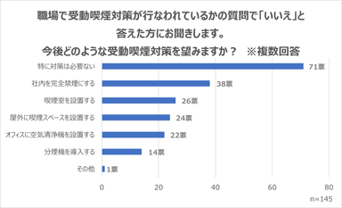 一方、「受動喫煙対策が行なわれていない」と回答された方に、どのような対策を望むか質問したところ、以下のような回答が得られました。