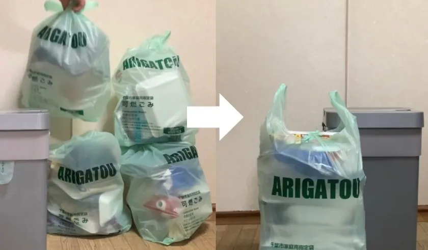 4袋のゴミを1袋へ