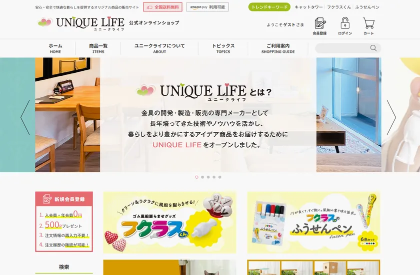 ユニークライフ公式オンラインショップで購入できる商品を一部ご紹介。