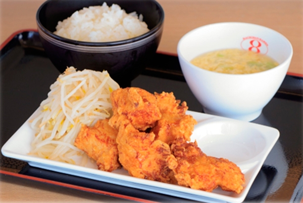さらに、ロードサイドやビルインの8番らーめん店舗では販売していない定食メニューとして、地元企業である有限会社三吉商店様のもやしをたっぷり添えた「8番唐揚げ定食」も同時に販売いたします。 これらの新メニューは観光客が徐々に回復している中、地元のお客様にもご利用いただく機会を増やすため、地元企業様とのコラボにより、県内を盛り上げていこうと考案いたしました。