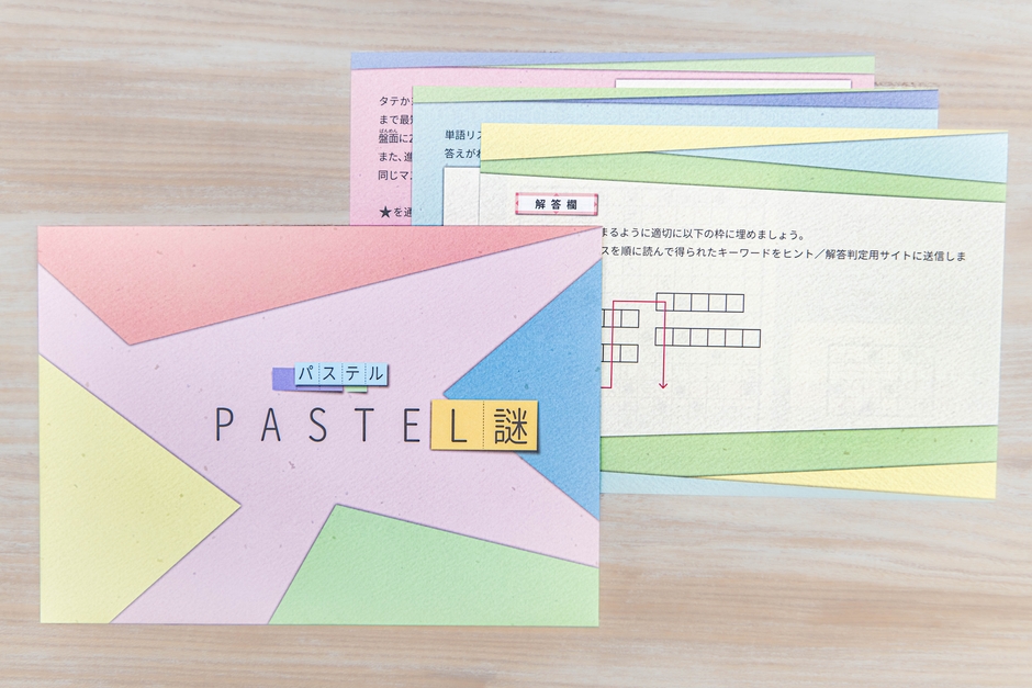 封筒の中に入っているのはたった3枚のパステルカラーの問題用紙ですが、その中には見た目以上にボリューム満点の謎が存在します。普段からリアル脱出ゲームや謎解きが好きな方にも、濃厚な謎解き体験をお楽しみいただけます。