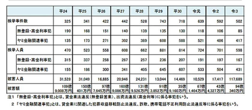 引用:令和4年6月 警察庁「ヤミ金融事犯の検挙状況(PDF)」より