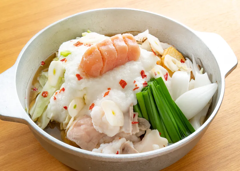 辛子明太子をスープに馴染ませながらお召しあがりください。〆は雑炊がおすすめです。