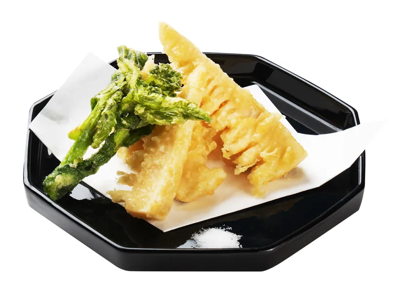 福岡の春を告げる名品「合馬産 筍」を使用。合馬から産地直送された筍は、香り、味、歯ごたえともに美味しいと言われています。風味豊かで柔らかく、えぐみの少ない筍を揚げたてでお召しあがりいただけます。