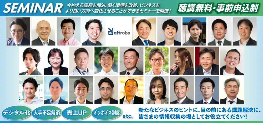 「デジタル化・DX推進」、「社内環境改善」、「売上UP」、「インボイス制度」、「戦略人事」、「戦略総務」、「戦略経理」など多彩なテーマのセミナーで皆様をお迎えします。今抱える課題解決や新たなビジネスのヒントに、情報収集の場としてお役立てください。