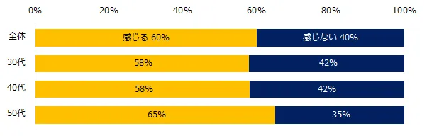若手時代(20代)に比べて、転職理由に変化を感じるか伺うと、60%のミドルが「感じる」と回答しました。50代は特に変化を感じる方が多いことが伺えます。具体的なコメントもあわせてご紹介します。