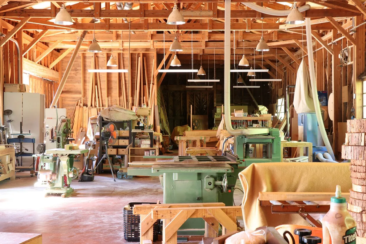 十津川村の木を使い、村で作られたオーダー家具、木工品を展示・販売する拠点で、村の木工家が集まり運営。