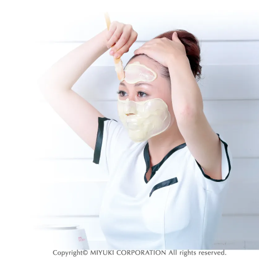松ヤニパックをヘラでお顔に塗布し、仮面を作り乾いたら剥がします。