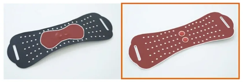 旧タイプはEMSコントローラーの接続端子が横位置だったために、運動中に外れるといったことがありました。それを踏まえて接続端子を縦位置に変更し運動中に外れる心配がなくなりました。