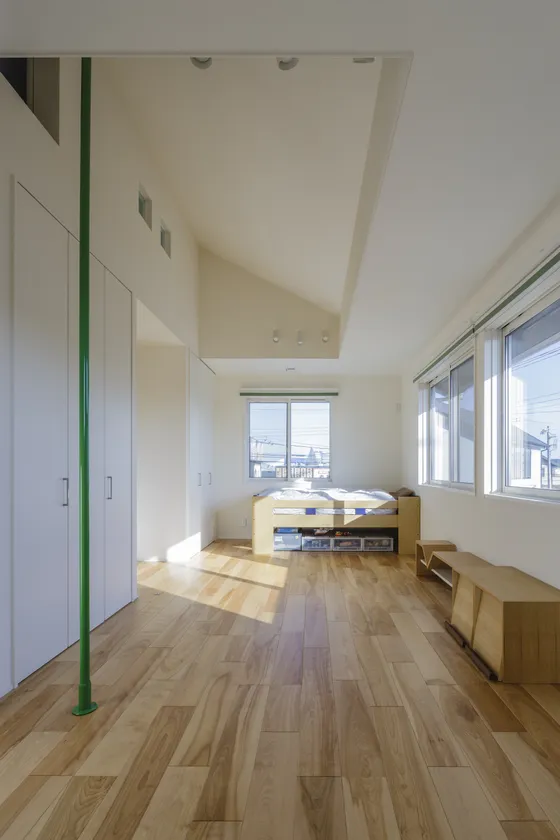 「登り棒」がある子ども部屋 将来は仕切って2つの部屋に