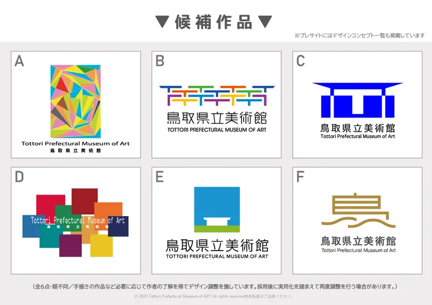最優秀賞に選ばれた作品は、デザイン調整を終えて、鳥取県立美術館のロゴ・シンボルマークとして採用されます。授賞式では応募者本人が登壇しデザインコンセプトについて説明します。