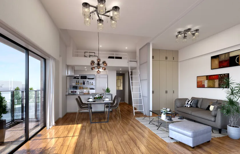 本プロジェクトは、建築基準法による日影規制がない工業地域の特性から“高さ”を活かしたメゾネットやスキレージ(スキップフロア&ストレージ)、ロフト等を採用したプランを充実させました。さらに最上階は、専有面積100m2超、サウナ付きペントハウスもご用意。天然御影石のキッチン天板等、住み心地を追求したハイスペックな設備仕様も採用しました。