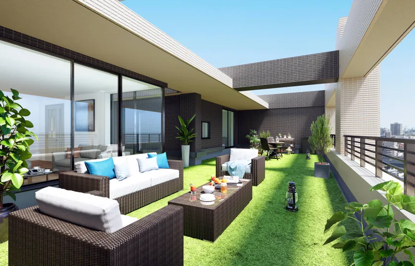 地上19階建、全253邸の「マスタープレイス」は、水盤を湛えたエントランスにつながるゆったりとしたアプローチが特徴的。エントランス奥の“コートヤード”には、キッズスペースやワーキングスペース等が設置されており、その中心には自然光に照らされたオリーブの樹がガラス張りの中庭に佇んでいるのが印象的な空間です。その他パーティールームやフロントサービスなども併設しています。