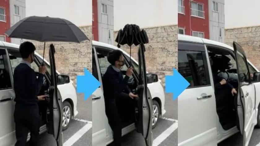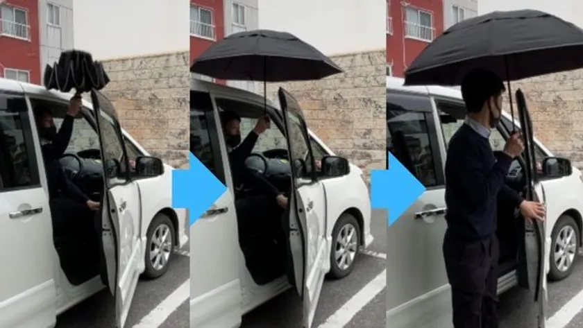 車を降りるときも濡れない