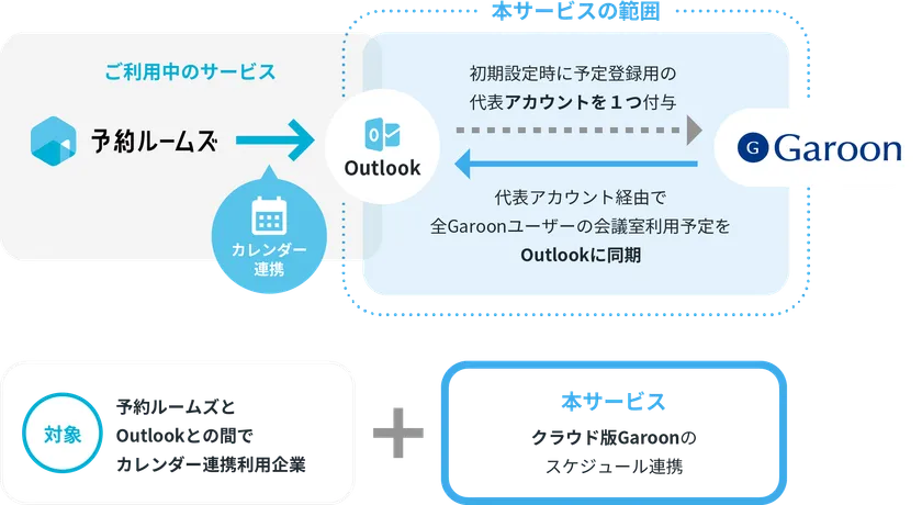 ■本サービスはクラウド版Garoonユーザーに、予約ルームズ x Outlook環境との併用利用を可能にします。